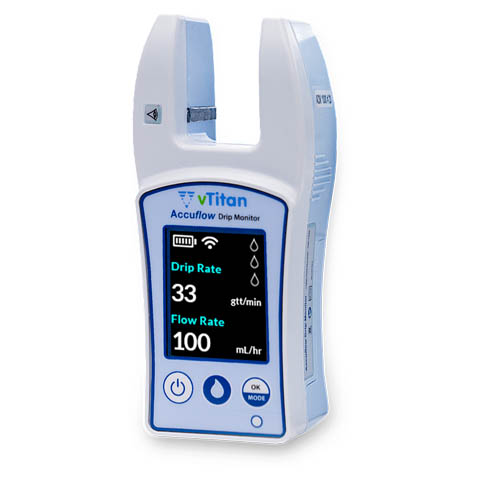 The Accuflow Drip Monitor, with its Wi-Fi connectivity, allows caregivers to monitor infusion parameters and receive alarms remotely from the nursing desk.